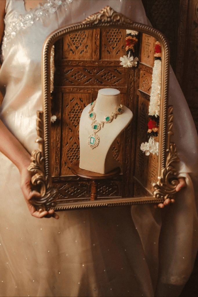 Each element is thoughtfully designed to create balance, where the warmth of gold meets the subtle sparkle of stones. The result is a graceful statement that works beautifully for weddings, formal evenings, or elevated everyday wear.